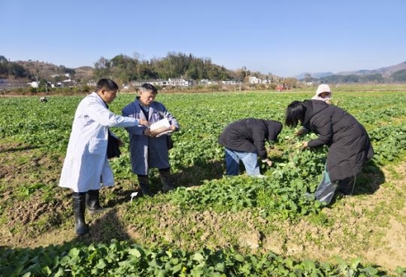 专家团队还针对油菜根肿病防控工作开展了专项调研,实地查看病株发病症状,分析病害发生规律,深入考察当地部署的抗根肿病品种鉴定试验地,详细调查参试品种的发病情况,统计发病率、病情指数等数据,为后续筛选适宜贵定地区推广的抗根肿病优质油菜品种,提供了重要的数据支撑和科学评判依据。