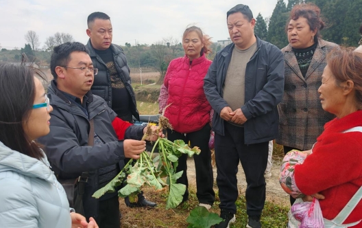讲解结束后,志愿者深入油菜田间,开展冬季油菜管理技术实地指导。针对部分油菜长势不佳、发病等情况,专家从播种时机、水肥管理、病虫害防治、田间除草及品种选择等方面进行综合分析,提出具体改进措施。通过“手把手”示范,向农户传授油菜中耕培土、防冻保苗等越冬管理技巧,对农户提出的“农家肥与化肥区别”“病虫害防治时机把握”等问题进行耐心解答。